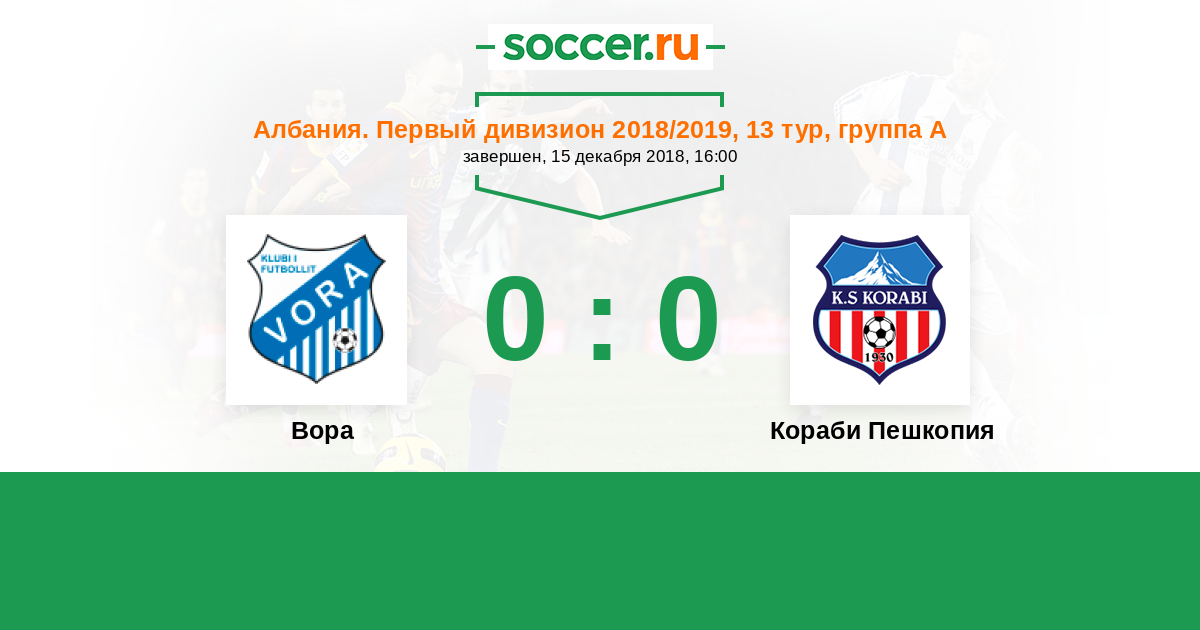 Вора - Кораби Пешкопия: обзор матча 15 декабря 2018