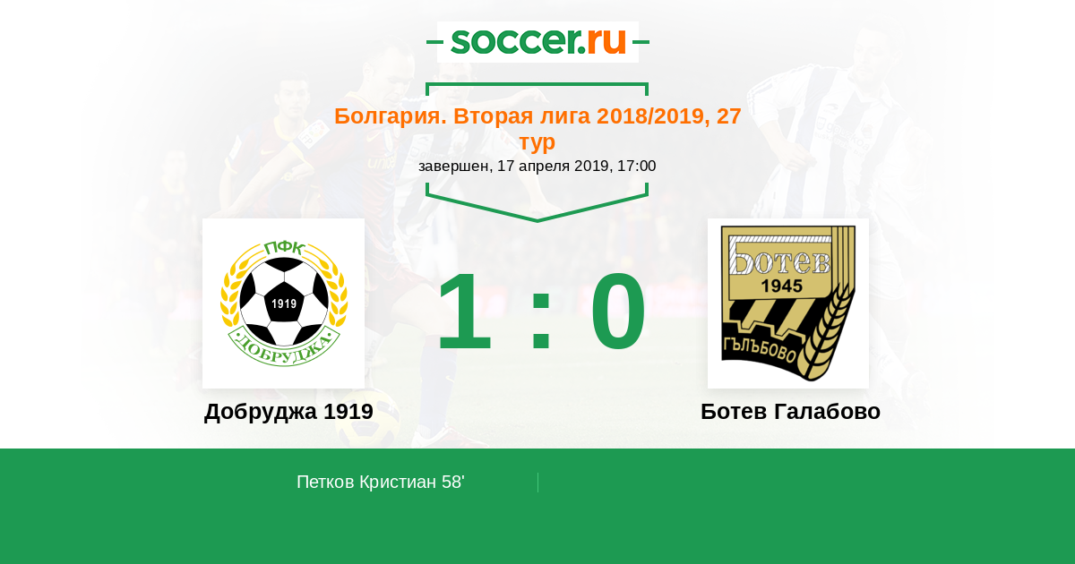 Добруджа 1919 - Ботев Галабово: обзор матча 17 апреля 2019