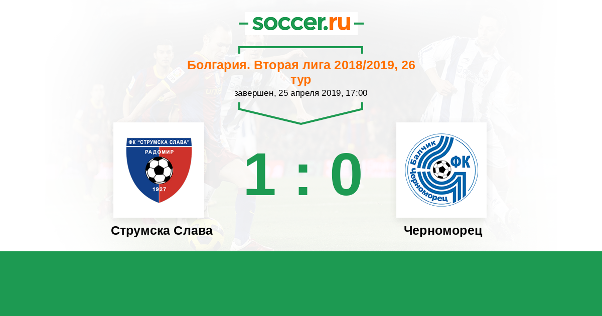 Струмска Слава - Черноморец: обзор матча 25 апреля 2019