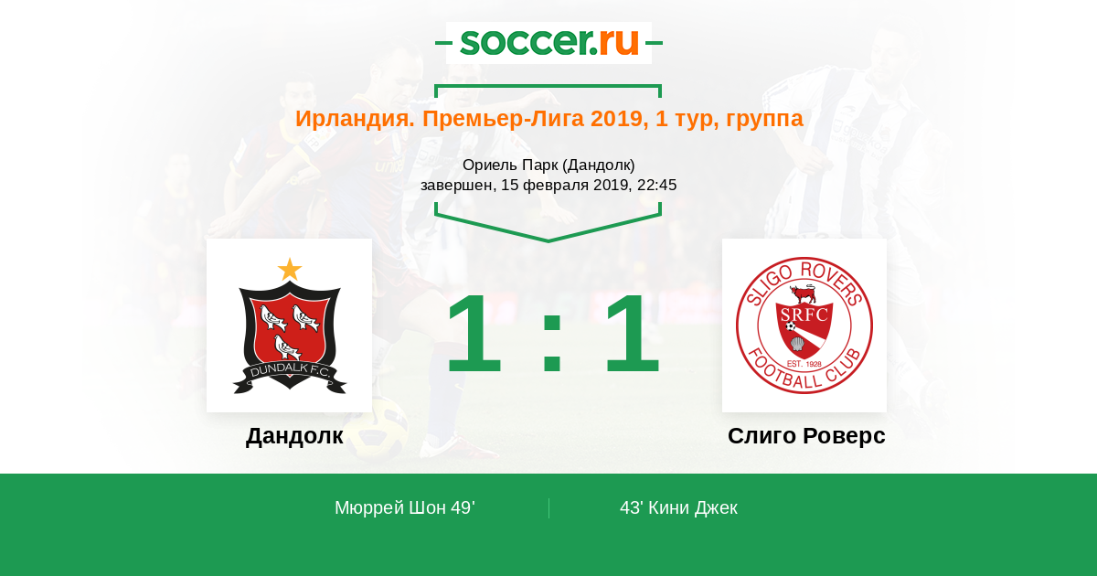 Дандолк - Слиго Роверс: обзор матча 15 февраля 2019