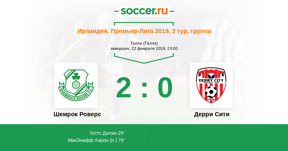 Шемрок Роверс - Дерри Сити: обзор матча 22 февраля 2019