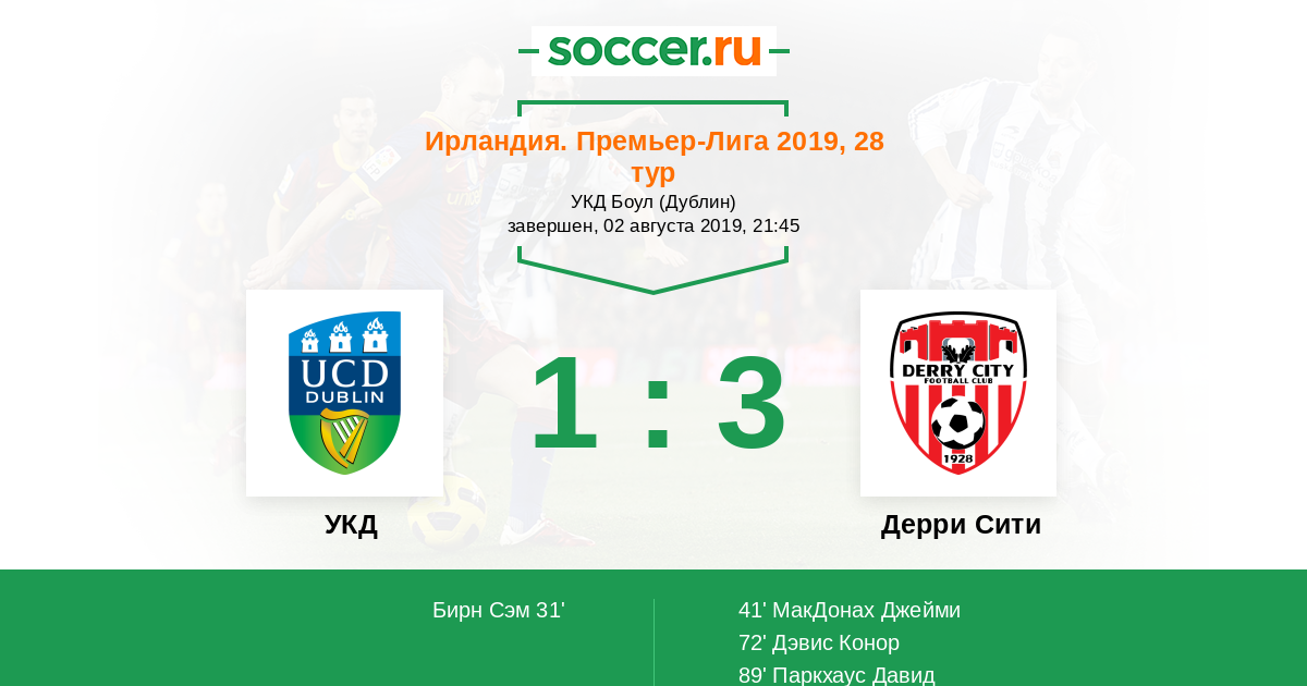 УКД - Дерри Сити: обзор матча 2 августа 2019