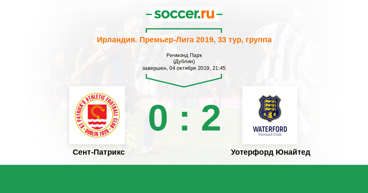 Сент-Патрикс - Уотерфорд Юнайтед: обзор матча 4 октября 2019