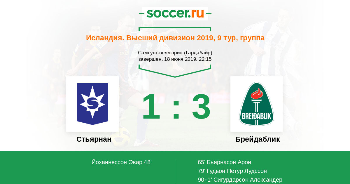 Стьярнан - Брейдаблик: обзор матча 18 июня 2019