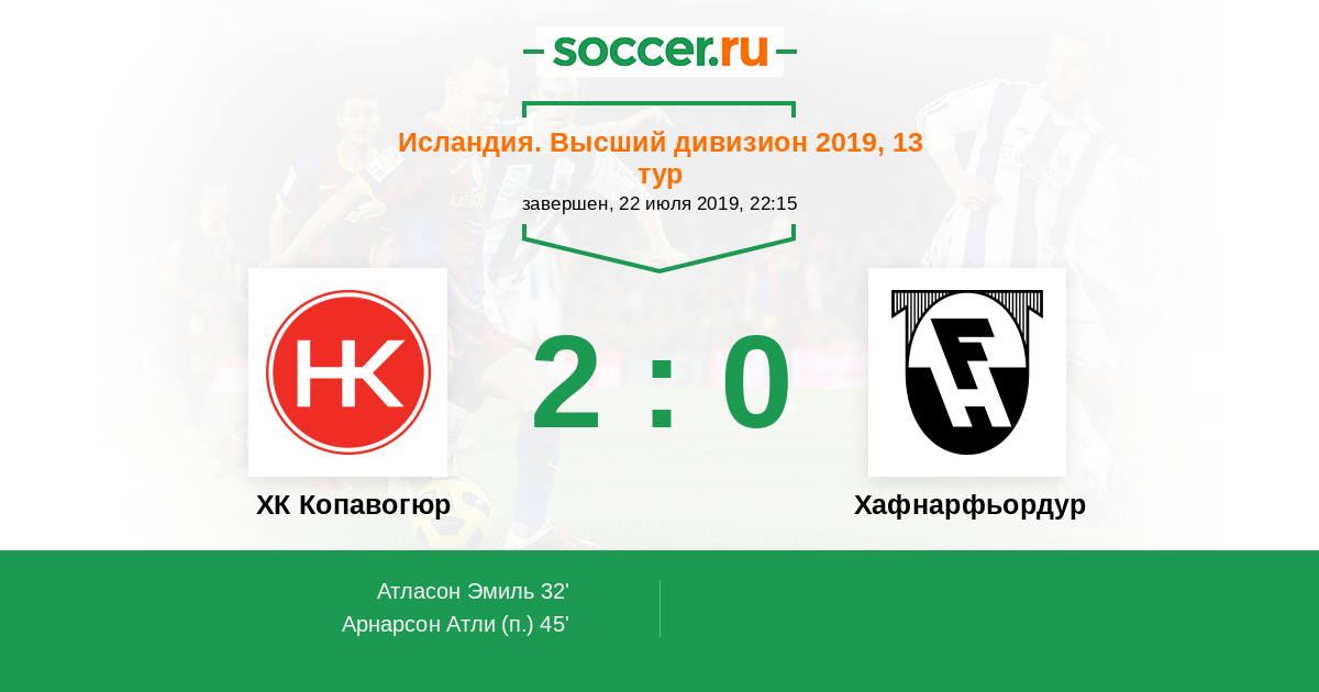 ХК Копавогюр - Хафнарфьордур: обзор матча 22 июля 2019