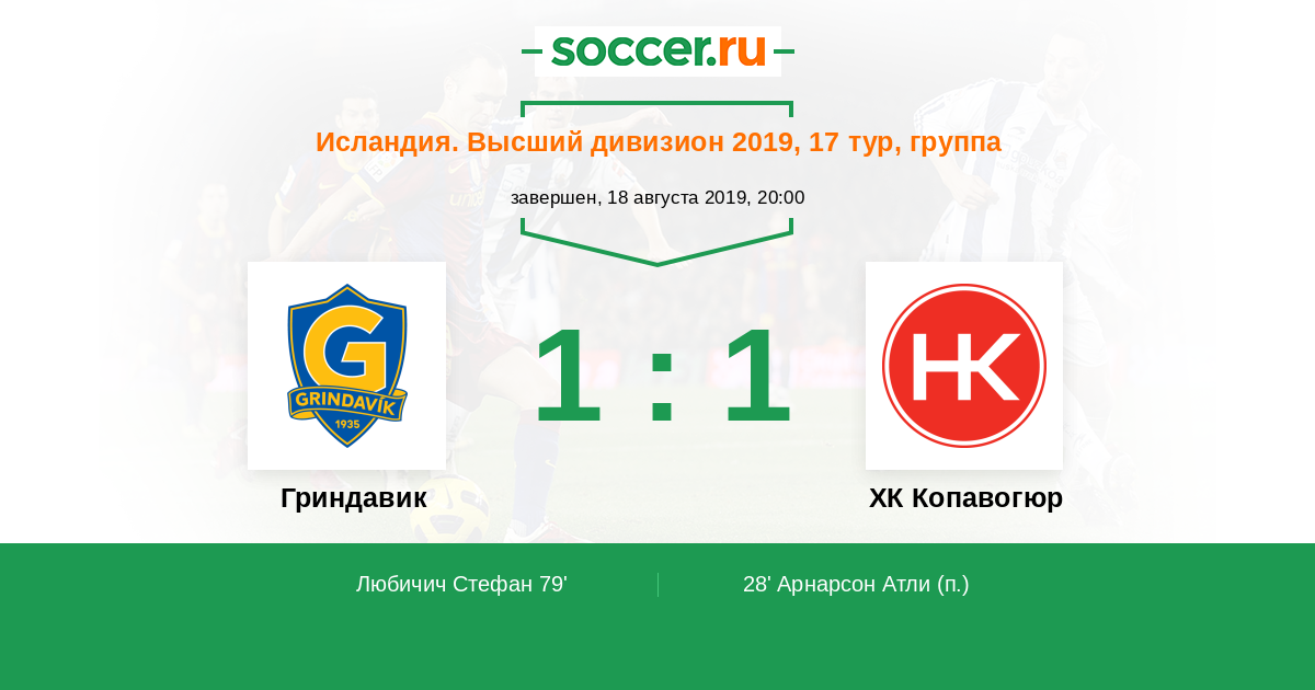 Гриндавик - ХК Копавогюр: обзор матча 18 августа 2019