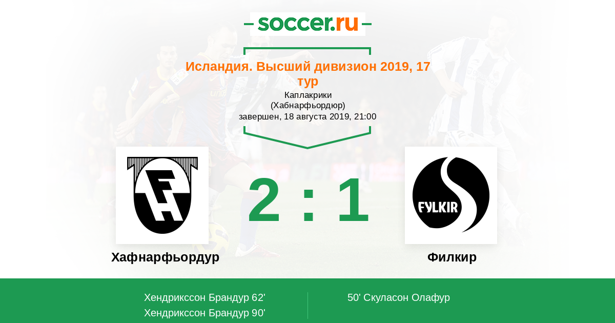 Хафнарфьордур - Филкир: обзор матча 18 августа 2019