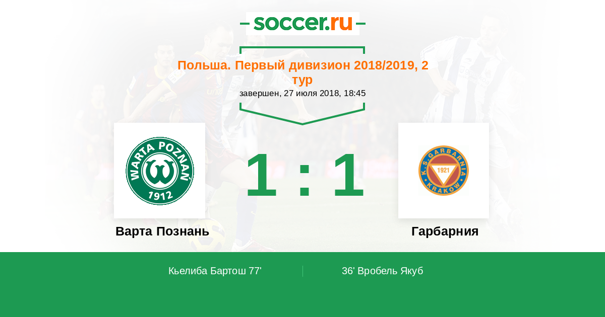 Варта Познань - Гарбарния: обзор матча 27 июля 2018