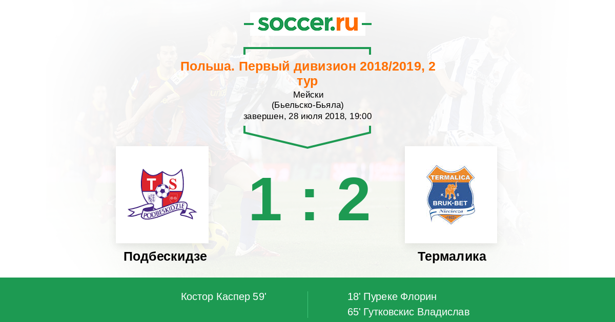 Подбескидзе - Термалика: обзор матча 28 июля 2018