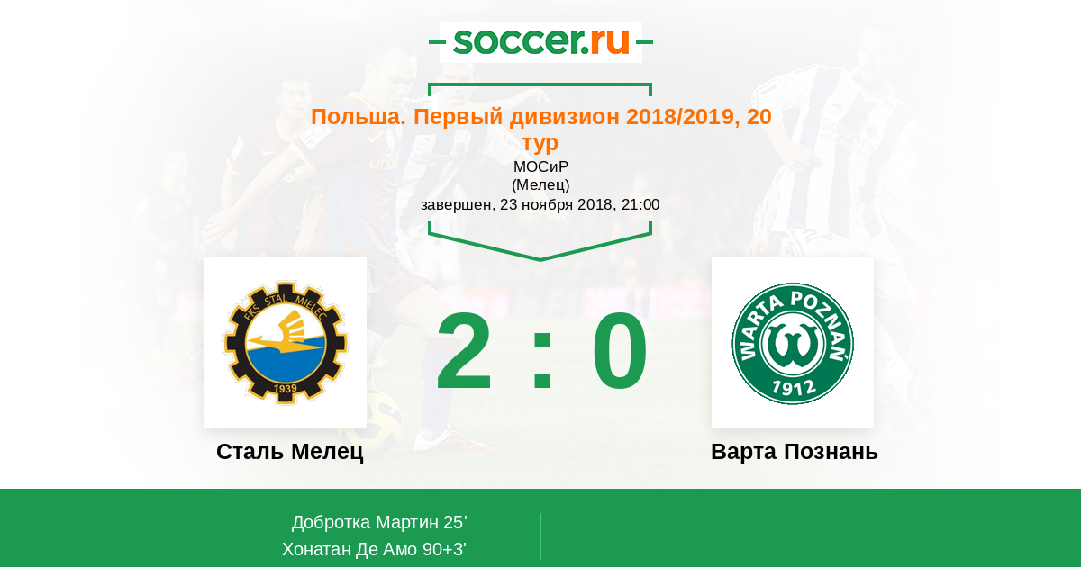 Сталь Мелец - Варта Познань: обзор матча 23 ноября 2018