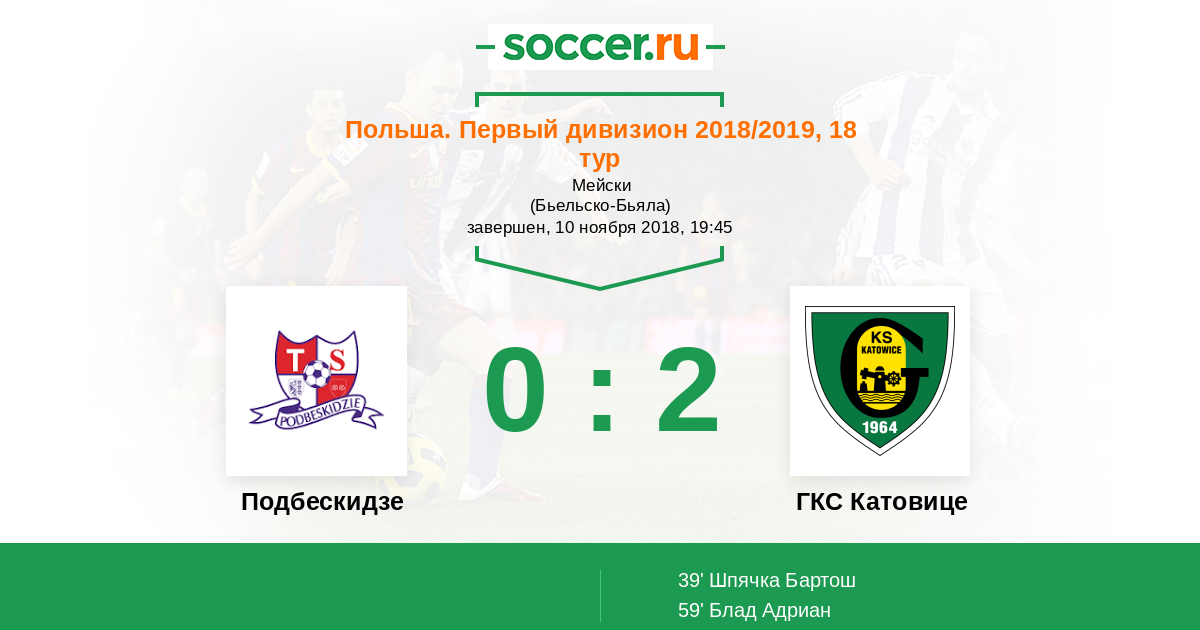 Подбескидзе - ГКС Катовице: обзор матча 10 ноября 2018