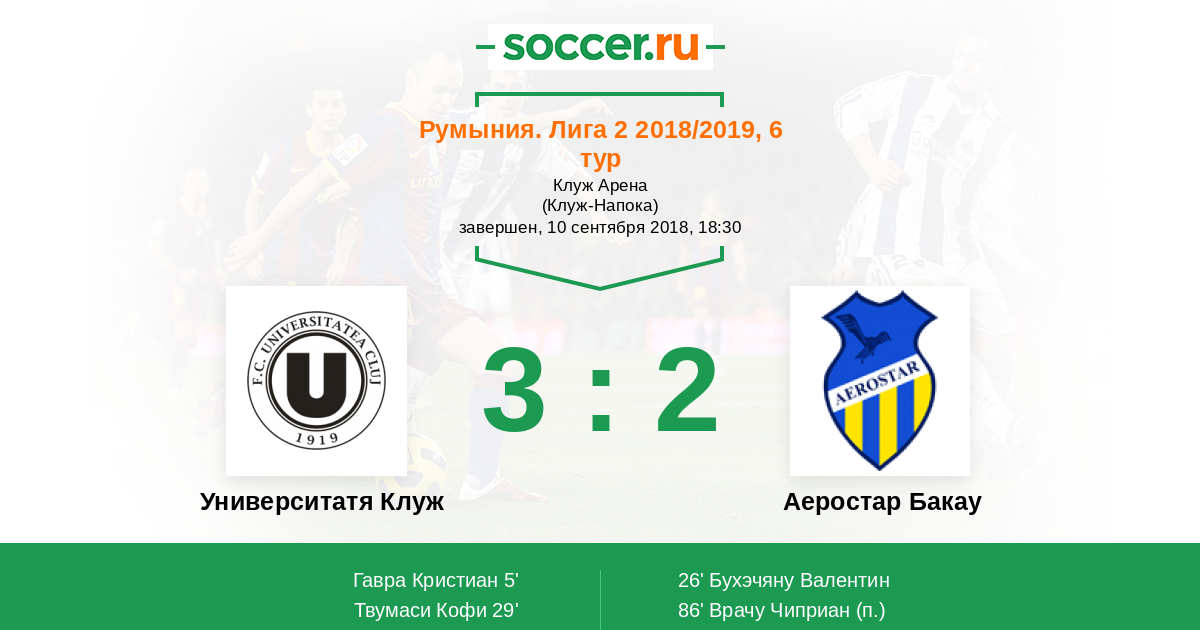 Университатя Клуж - Аеростар Бакау: обзор матча 10 сентября 2018
