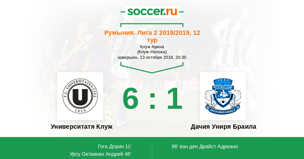 Университатя Клуж - Дачия Униря Браила: обзор матча 13 октября 2018