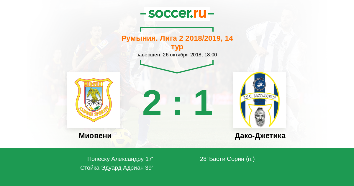 Миовени - Дако-Джетика: обзор матча 26 октября 2018