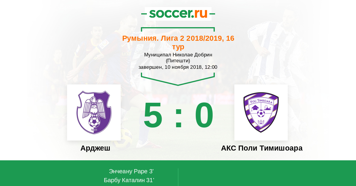 Арджеш - АКС Поли Тимишоара: обзор матча 10 ноября 2018