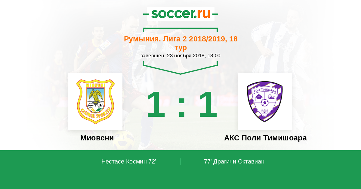 Миовени - АКС Поли Тимишоара: обзор матча 23 ноября 2018