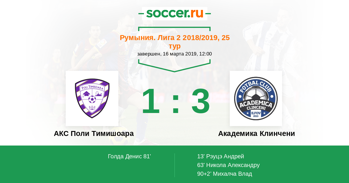 АКС Поли Тимишоара - Академика Клинчени: обзор матча 16 марта 2019