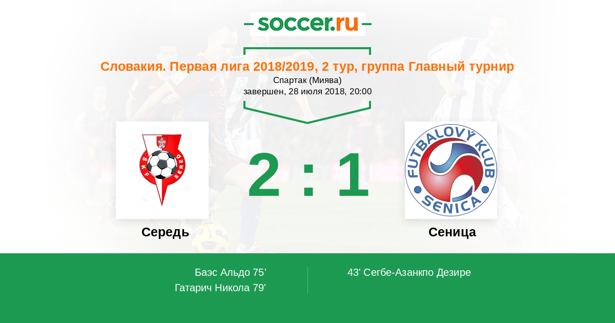 Середь - Сеница: обзор матча 28 июля 2018