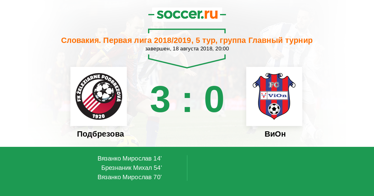 Подбрезова - ВиОн: обзор матча 18 августа 2018