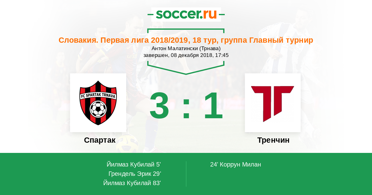 Спартак - Тренчин: обзор матча 8 декабря 2018