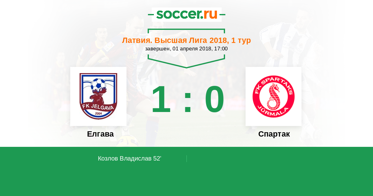 Елгава - Спартак: обзор матча 1 апреля 2018