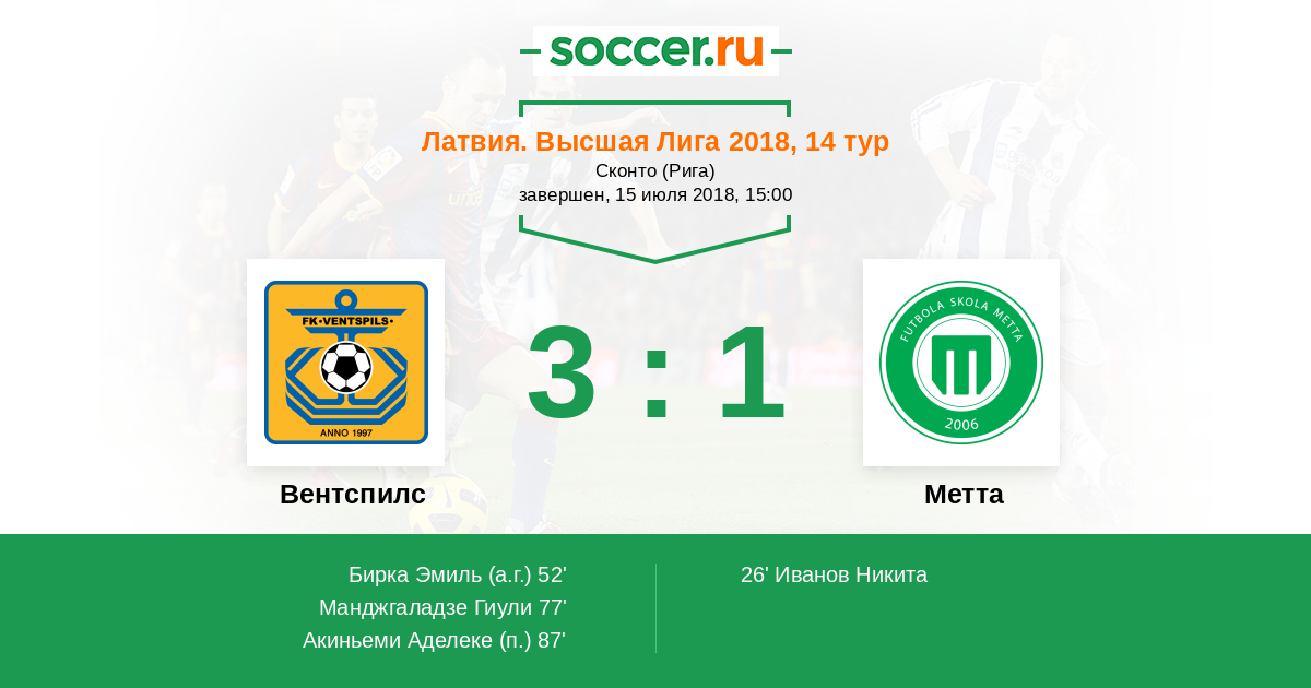 Вентспилс - Метта: обзор матча 15 июля 2018