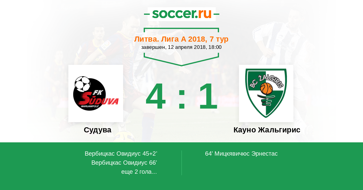 Судува - Кауно Жальгирис: обзор матча 12 апреля 2018