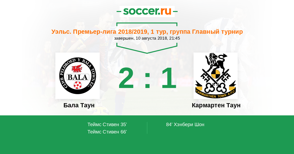 Бала Таун - Кармартен Таун: обзор матча 10 августа 2018