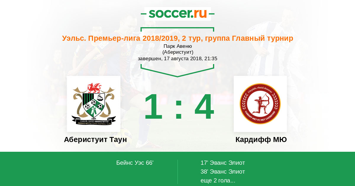 Аберистуит Таун - Кардифф МЮ: обзор матча 17 августа 2018