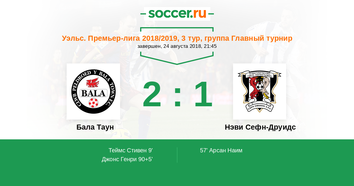 Бала Таун - Нэви Сефн-Друидс: обзор матча 24 августа 2018