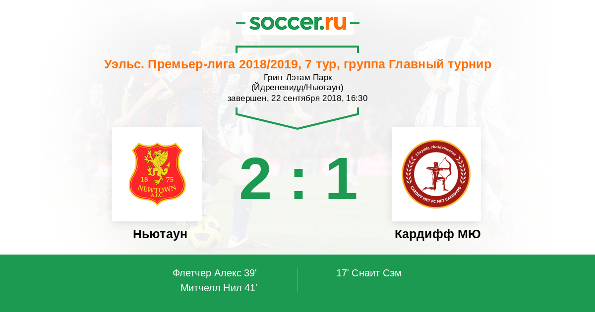 Ньютаун - Кардифф МЮ: обзор матча 22 сентября 2018