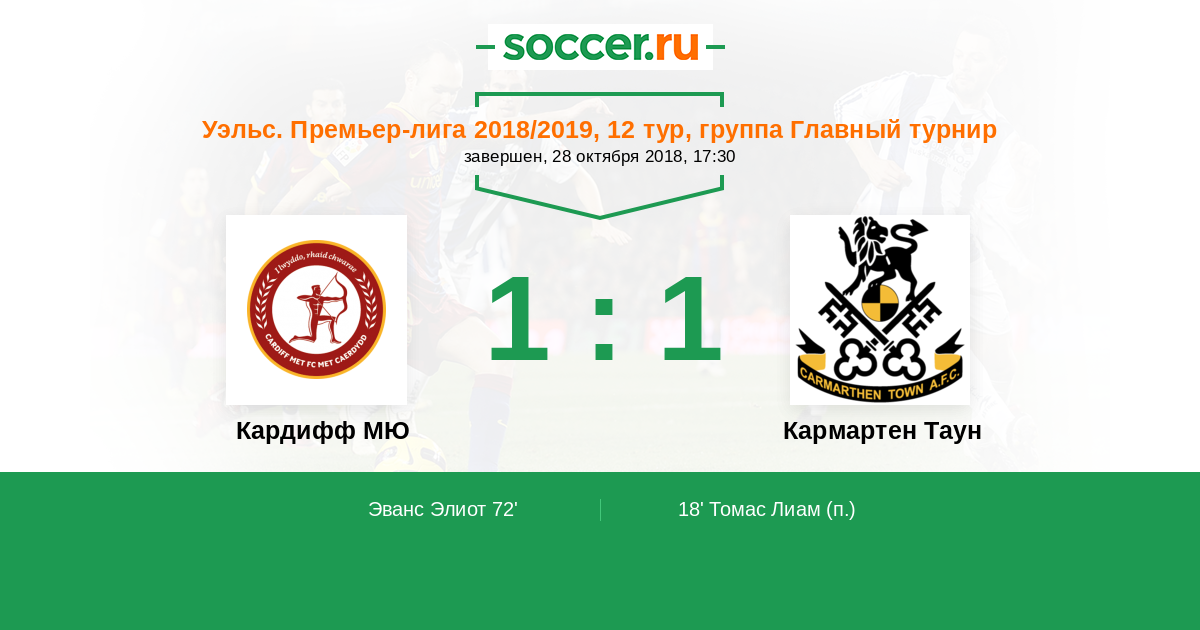 Кардифф МЮ - Кармартен Таун: обзор матча 28 октября 2018