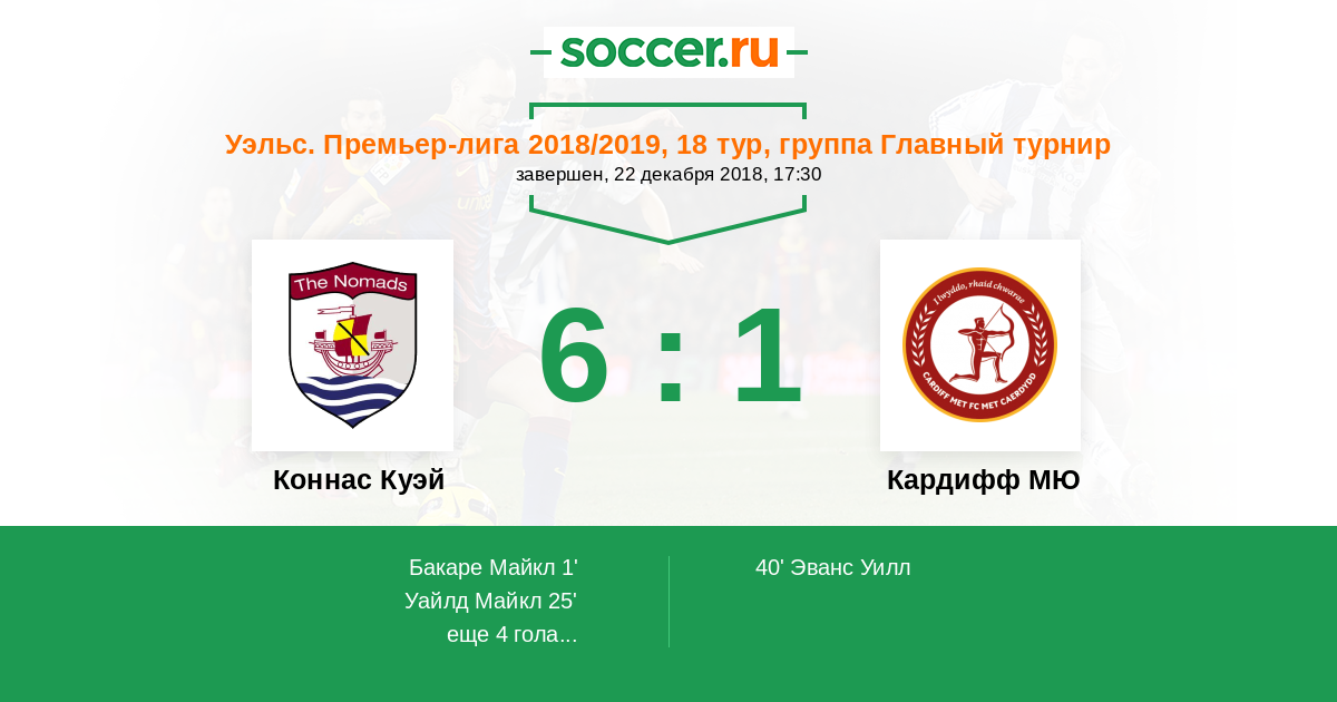 Коннас Куэй - Кардифф МЮ: обзор матча 22 декабря 2018