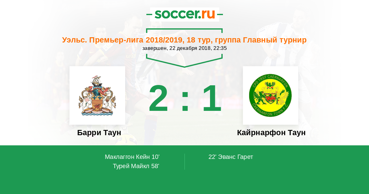 Барри Таун - Кайрнарфон Таун: обзор матча 22 декабря 2018