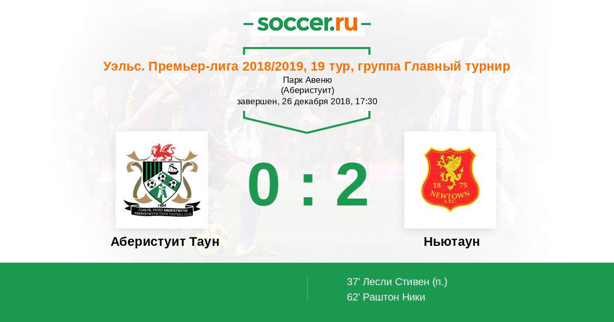 Аберистуит Таун - Ньютаун: обзор матча 26 декабря 2018