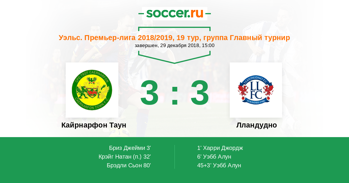 Кайрнарфон Таун - Лландудно: обзор матча 29 декабря 2018