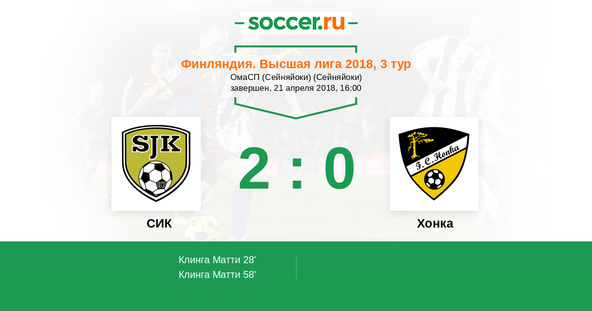 СИК - Хонка: обзор матча 21 апреля 2018
