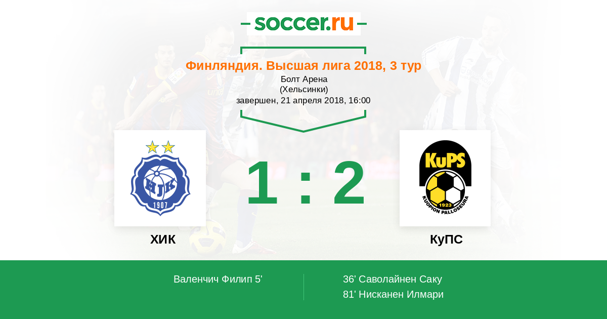 ХИК - КуПС: обзор матча 21 апреля 2018