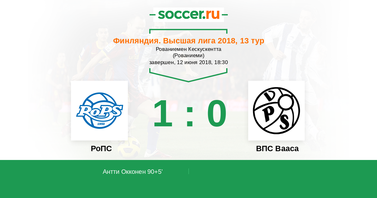 РоПС - ВПС Вааса: обзор матча 12 июня 2018