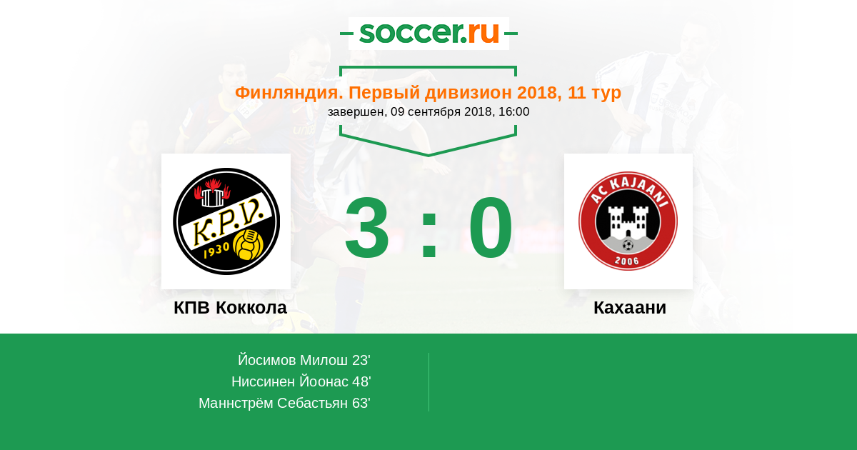 КПВ Коккола - Кахаани: обзор матча 9 сентября 2018