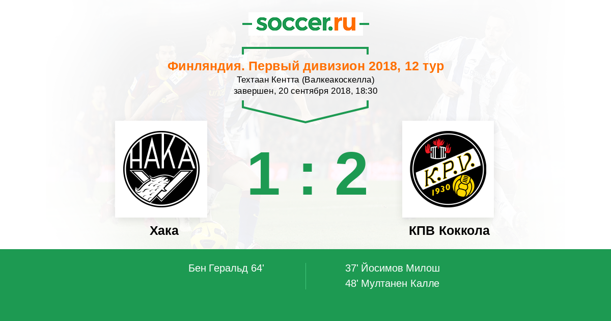 Хака - КПВ Коккола: обзор матча 20 сентября 2018