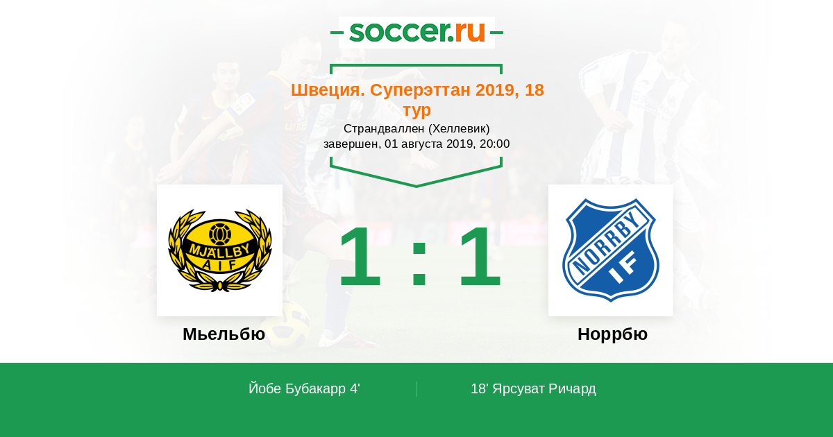 Мьельбю - Норрбю: обзор матча 1 августа 2019