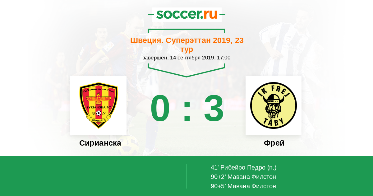 Сирианска - Фрей: обзор матча 14 сентября 2019