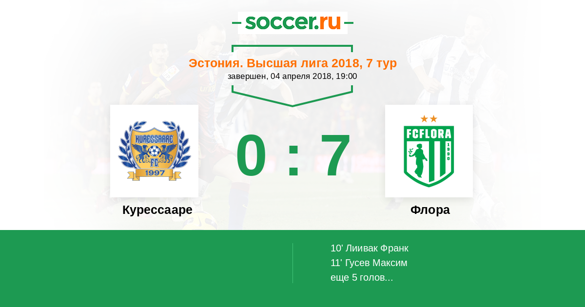 Курессааре - Флора: обзор матча 4 апреля 2018