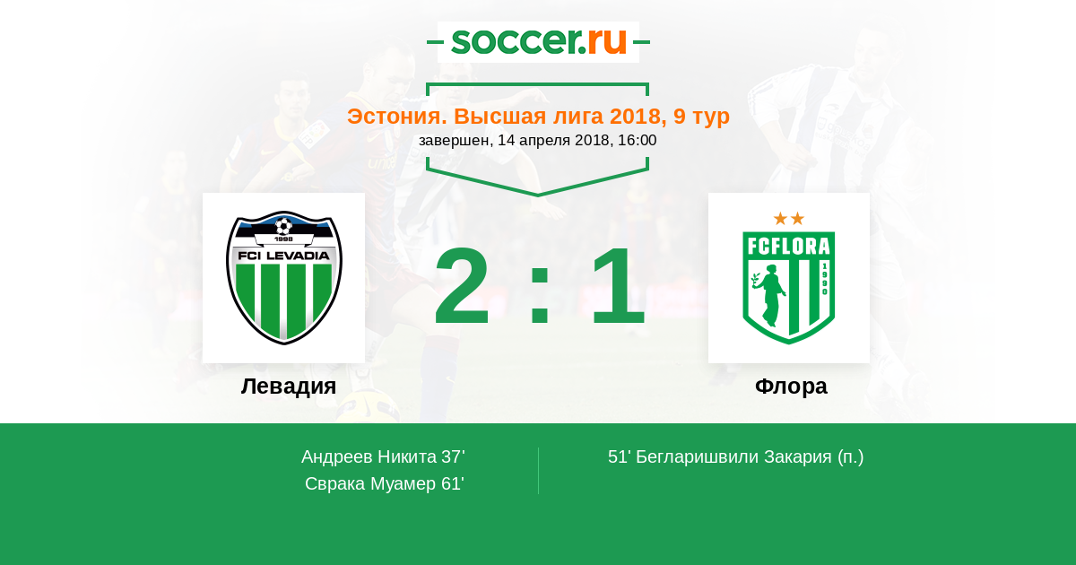 Левадия - Флора: обзор матча 14 апреля 2018