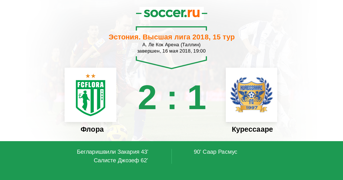 Флора - Курессааре: обзор матча 16 мая 2018