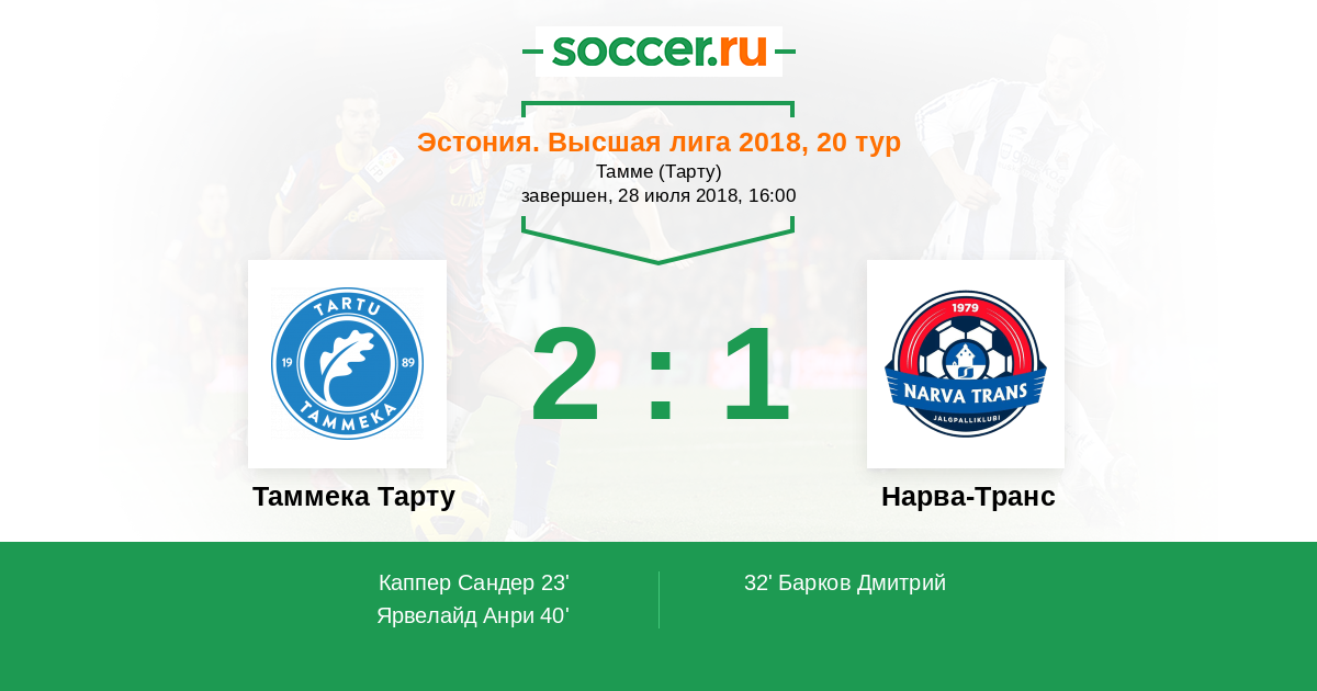 Таммека Тарту - Нарва-Транс: обзор матча 28 июля 2018