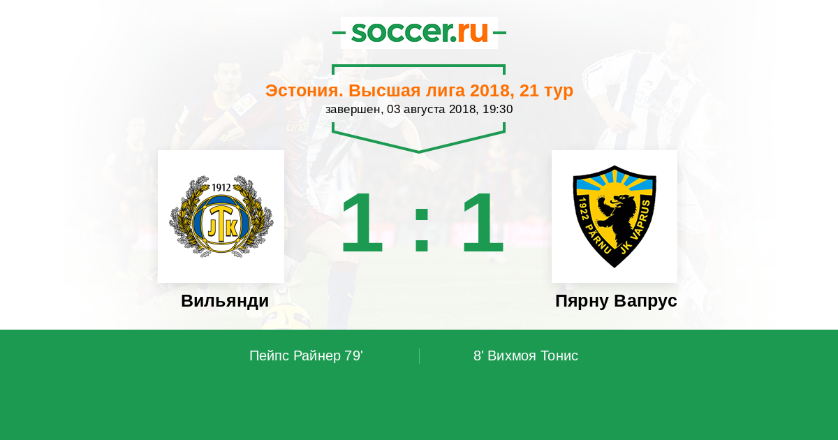 Вильянди - Пярну Вапрус: обзор матча 3 августа 2018