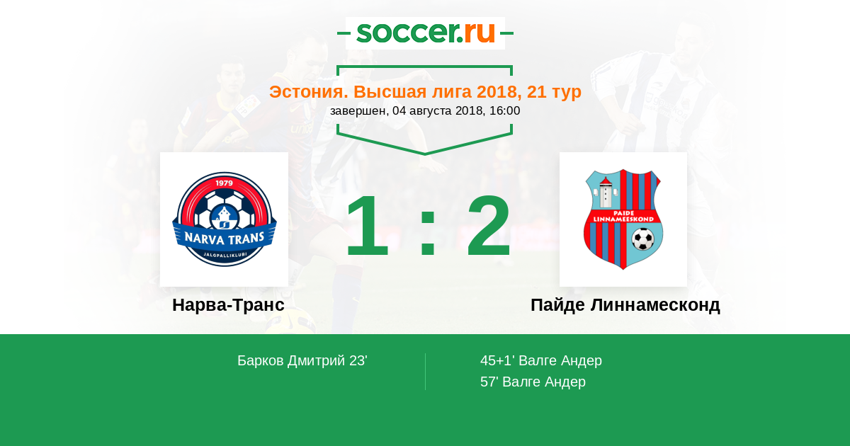 Нарва-Транс - Пайде Линнамесконд: обзор матча 4 августа 2018