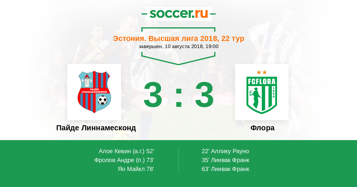 Пайде Линнамесконд - Флора: обзор матча 10 августа 2018